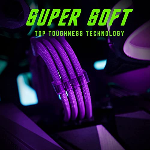 AsiaHorse 18AWG Prolunga Cavo PSU, Alimentatore Cavi per GPU/CPU, Cavi Alimentatore Computer con Pettini, Cable Management PC 24 Pin/(6+2) Pin/(4+4) Pin, 30 cm Cavo Di Estensione, Viola