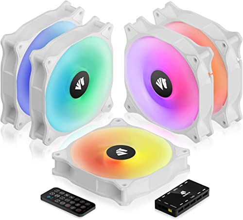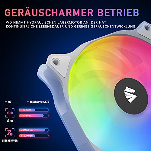 AsiaHorse Ventola per case da 120 mm serie WD-001 con controller,Ventole per case del computer della scheda madre 5V ARGB,Ventola di raffreddamento effetto luce regolabile, Bianco, 5PACK