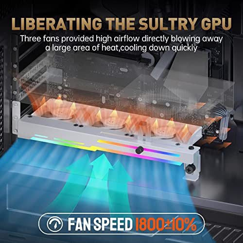 AsiaHorse Ventola per PC per GPU,Ventola per scheda grafica per computer PWM da 80 mm con supporto per scheda grafica,ventola GPU ARGB fino a 1800 RPM,dispositivo di raffreddamento GPU, Bianco