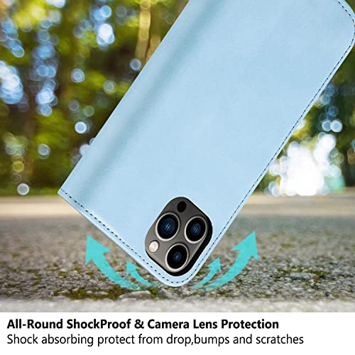 AsileCuir Custodia Compatibile con iPhone 13 Pro 5G 6.1 Pollici Cover Portafoglio a Libro Pelle PU Blocco RFID Porta Carte Supporto Magnetica Antiurto Flip Case,Cielo Blu