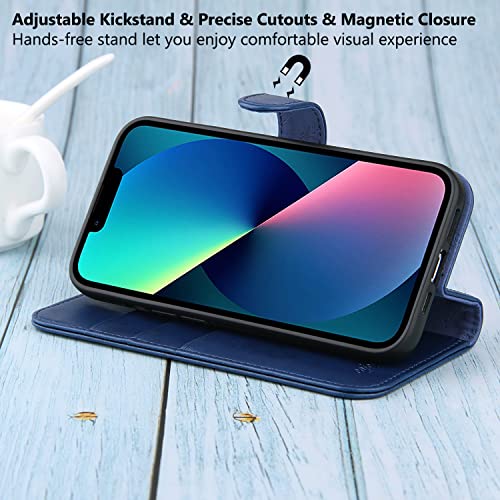 AsileCuir Custodia Cover Compatibile con iPhone 13 Pro 5G 6.1 Pollici Portafoglio a Libro Pelle PU Blocco RFID Porta Carte Supporto Magnetica Tasca Antiurto Flip Case,Blu Navy