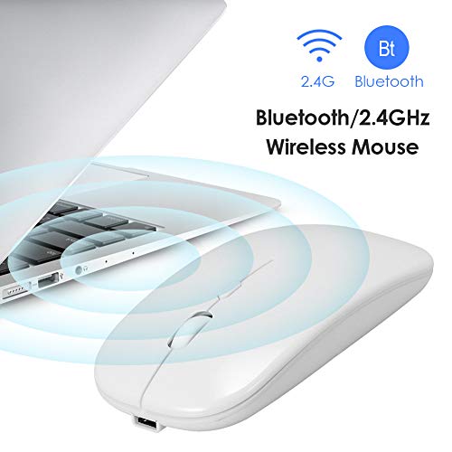 Asiproper - Mouse wireless Bluetooth 2.4 GHz Dual Mode USB ricaricabile per desktop Laptop PC Computer (bianco)
