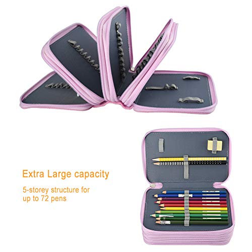 Asiv Astuccio 4 Scomparti Borsa Grande a Forma di Matita, Astuccio per Bambina con Paillettes, Astuccio Ragazza Grande Capacità, Adatta per Viaggi/Lavoro/Pittura, Rosa (4 Livelli 72 Slot)