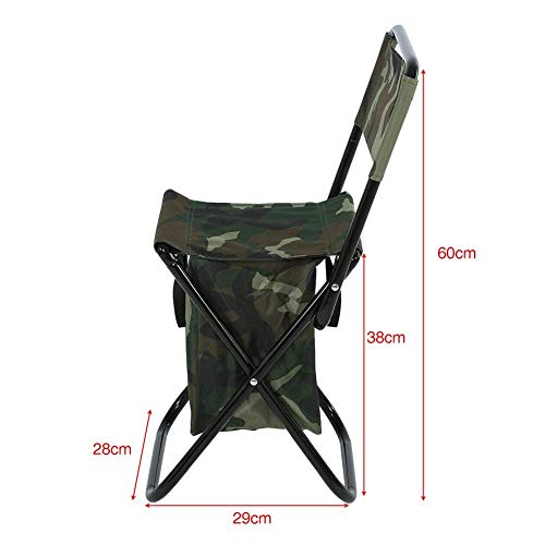Asixx Sedia da Pesca, Pieghevole da Campeggio all'aperto Sedia da Pesca Pratico Sedile da Trasporto Fatto di Tubi in Acciaio di Alta qualità e 600D Tessuto Oxford Resistente, Colore Mimetico
