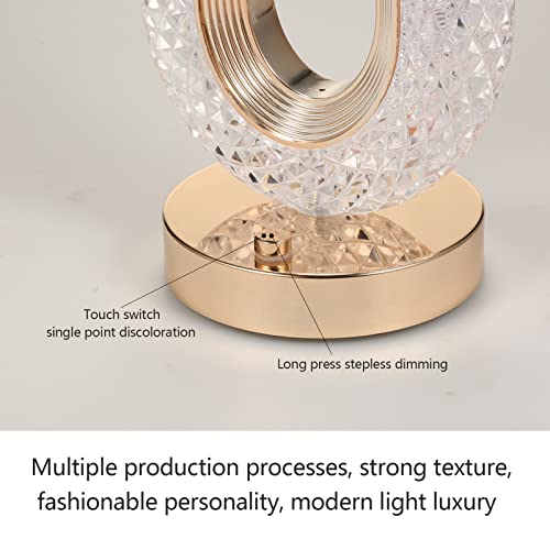 Asixxsix Lampada da Tavolo di Cristallo, Moderna Lampada da Comodino di Cristallo di Lusso LED Lampada da Comodino con Interruttore a sfioramento USB 3 Colori Che cambiano Luce Luce Decorativa