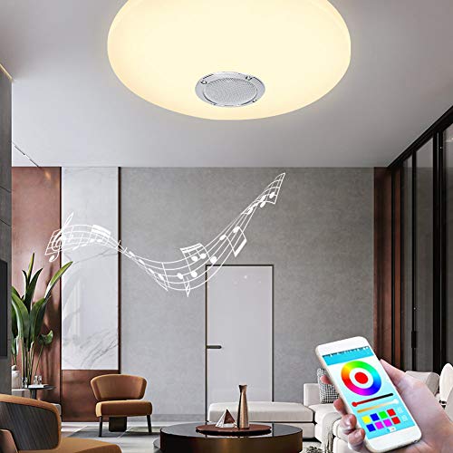 Asixxsix Plafoniera Musicale, Lampada da soffitto a LED Bluetooth con Interruttore Intelligente dimmerabile, per Soggiorno Camera da Letto(220V)