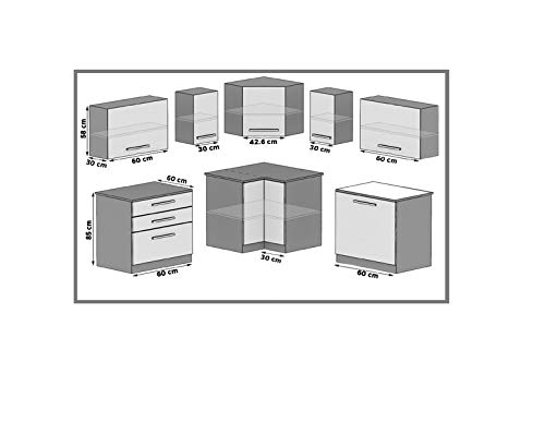 ASKETT | Cucina angolare completa + Componibile L 300 cm 8 pz | Piano di lavoro INCLUSO | Set di mobili da cucina moderni