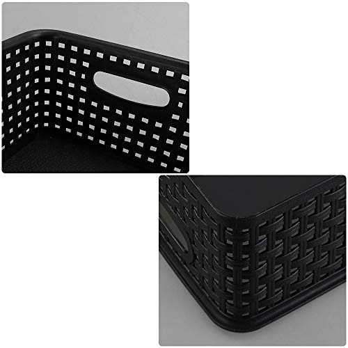 Asking Confezione da 6 cestini portaoggetti in plastica, cestino intrecciato, nero