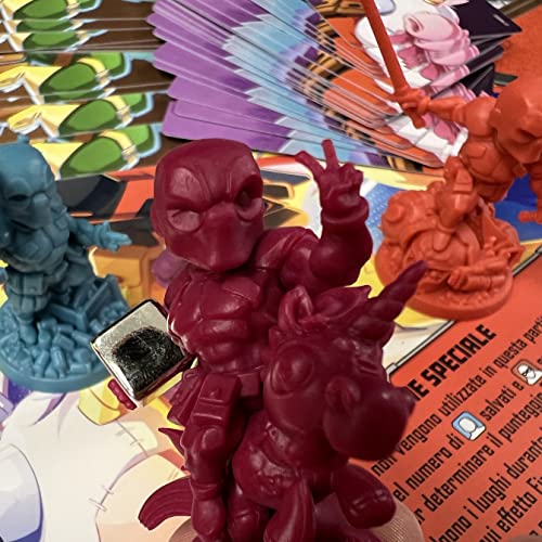 Contenuto: 1 Miniatura Eroe, 1 Miniatura Criminale, 1 Miniatura Sfida, 1 Miniatura Antieroe, 24 Carte Eroe, 24 Carte Caos di Deadpool, 12 Carte Minaccia, 24 Carte Piano Supremo, 2 Schede del Criminale, 1 Carta Sfida, 1 Luogo, 1 Regolamento. Per giocare è necessario il gioco base Marvel United o Marvel United X-Men