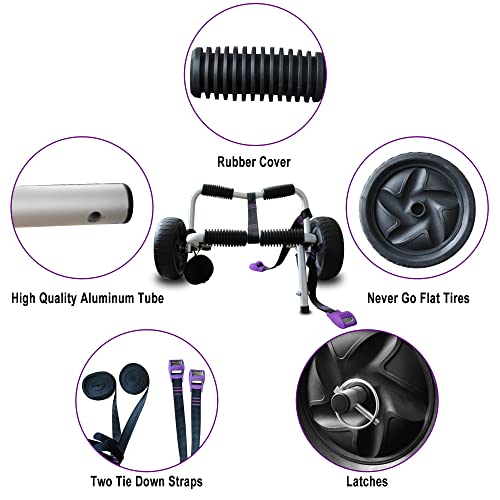Durevole: il nostro carrello per kayak può trasportare fino a 45,4 kg e include due cinghie con fibbia a camma per fissare il kayak, la canoa o un'altra piccola barca una volta posizionato sopra il carrello.