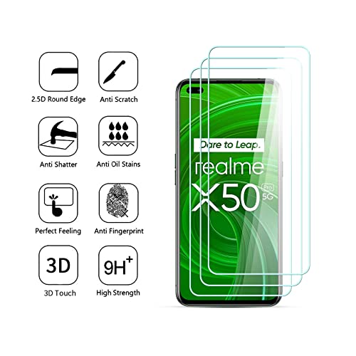 ultra-trasparente: schermo in vetro temperato protettivo per Realme X50 Pro, pellicola in vetro multistrato temperato spesso 0,3 mm con durezza 9H, rivestimento anti-impronta, rivestimento oleorepellente che resiste alle macchie, mantiene uno schermo HD duraturo.