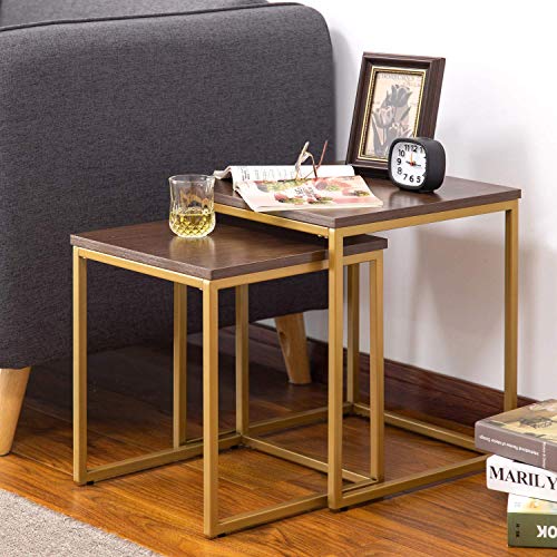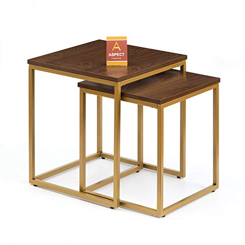 ASPECT Regis-Set di 2 tavolini a Nido d'Ape, Colore: Noce/Oro, 40 x 40 x 45 cm, 40x40x45(H) cm