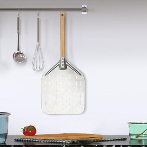 Professionalità: Piercing pala pizza può rilasciare farina di mais o farina in eccesso sul fondo, rendendo il fondo della pizza più croccante. La superficie della pala è di 30 x 30 centimetri ed è lunga 70 centimetri (compresa una maniglia rimovibile). Non ci sono problemi a trasferire pizza da 12 pollici.