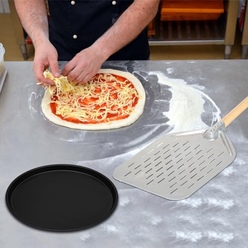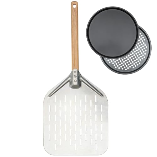ASPENBO Pala per Pizza Forata+Teglie per Pizza Set di 3 pezzi,Anodizzato Duro con Manico Smontabile per Pizzas,12 Pollici Tegami Pizza Acciaio con rivestimento antiaderente.