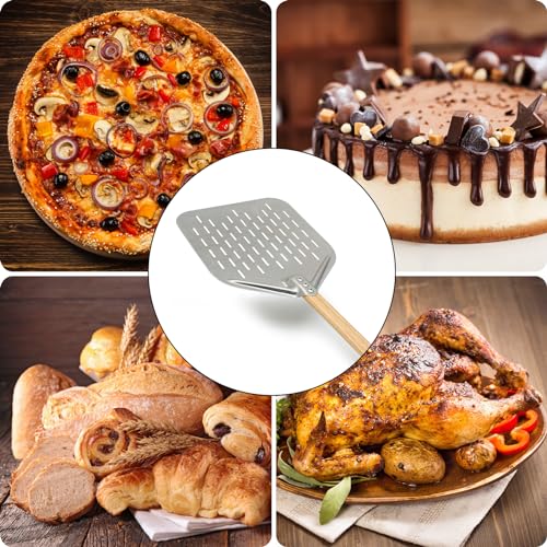 Alta qualità: Pala per pizza in alluminio anodizzato ad alta resistenza e leggera. Non solo resistente alle alte temperature, ma anche resistente all'usura e alla corrosione. La robusta maniglia in legno da 11 pollici fornisce una presa confortevole, sicura, rimovibile e portatile.