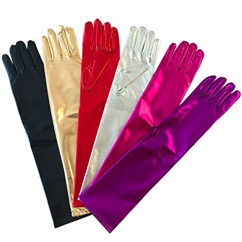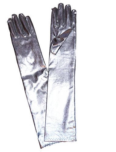 Aspetto bagnato guanti in PVC vinile lunghi lucido per feste musica lirica spettacoli (44cm, argento)