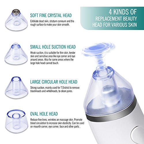 Aspira punti neri rimuovi, Belle Diary elettronico ricaricabile Punti neri Comedoni, Acne, Suzione foruncoli, Strumento di pulizia dei pori facciali con 4 teste intercambiabili