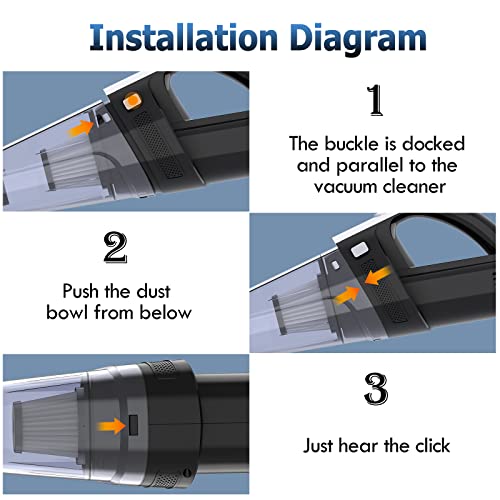 il contenitore per la polvere staccabile è ottimo per lo scarico rapido e semplice della spazzatura, comodo per il prossimo lavoro di pulizia. Il grande contenitore per la polvere da 350 ml è trasparente e ha 2 filtri lavabili che puoi sostituire. La luce a LED funziona bene per illuminare quei luoghi bui e difficili da vedere.