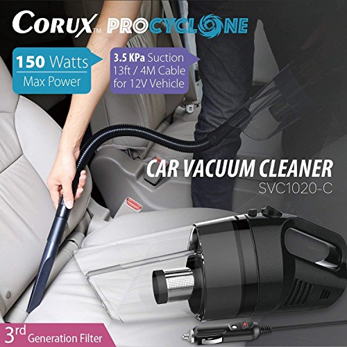 Aspirapolvere per auto 12 V - corux aspirapolvere a mano E Portatile Paletta di polvere, sistema Brevettato prociclónico, 150 W, 3500 PA, cavo da 4 metri, filtro di terza generazione, filtri lavabile, borsa da trasporto E altri accessori complementari