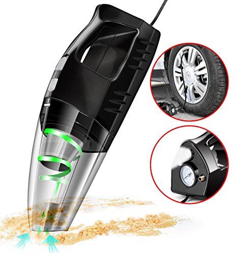 Aspirapolvere auto, Grando DC 12-Volt 120W asciugaio portatile bagnato & asciutto, cavo di alimentazione 16.4FT (5M) con sacchetto portatile (nero e rosso) (5 in 1)