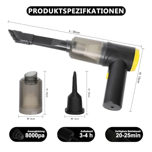Aspirapolvere portatile multifunzionale: questo aspirabriciole non è solo un aspirapolvere portatile, ma anche un soffiatore e un compressore per vuoto, dotato di numerosi accessori che possono essere utilizzati non solo per la pulizia quotidiana, ma anche per gonfiare e aspirare.