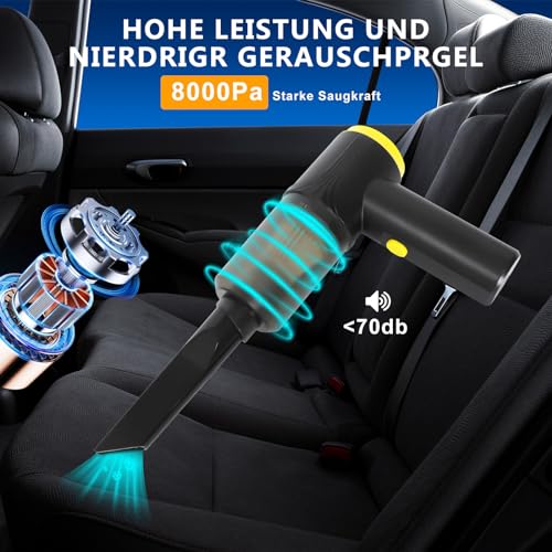 Aspirapolvere Portatile,8000PA Aspirabriciole Senza Fili, Mini Aspirapolvere senza fili Ricaricabile con Ricarica di Tipo C, 20-30 Minuti di Autonomia per Auto, Cucina, Casa, Peli di Animali Domestici