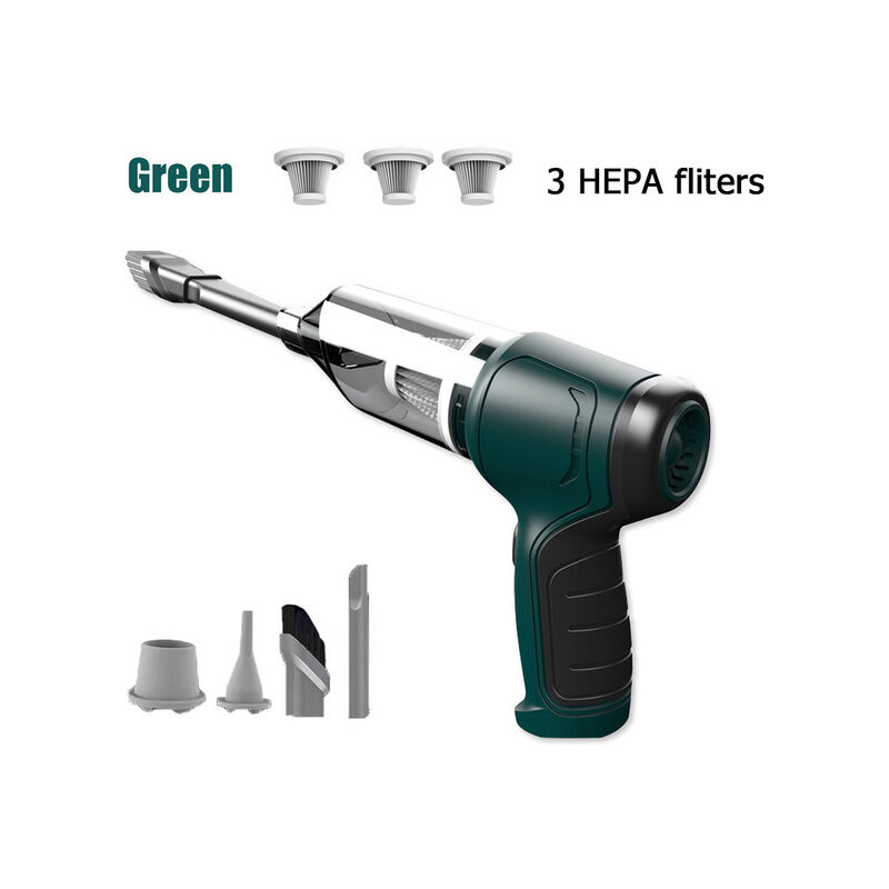 Caratteristiche: 【 9000PA Potente Suction】Il senza fili tenuto in mano di vuoto utilizza un 120W motore ad alta potenza, fino a 30,000 giri al minuto, si può aspirare peli di animali, polvere, detriti, frammenti di carta, buona per la pulizia quotidiana. Una scelta eccellente sia per auto e la pulizia della casa. 【 3 IN 1 】Utilizzato non solo come un aspirapolvere per la casa e la pulizia interni auto, ma anche come un ventilatore di aria e di vuoto compressore. 【 30 minuti Runtime】Con un 2x2000mah ad alta capacità della batteria al litio, E 'in grado di funzionare continuamente per fino a 30 minuti dopo completamente carica. Il suo sistema di ricarica fornisce protezione contro le sovratensioni, protezione da sovracorrente, e la protezione di surriscaldamento per garantire la sicurezza. Il vuoto cleaner è dotato di un sacchetto di polvere raccolta tazza. Dopo che la polvere raccolta secchio è pieno, si può facilmente premere il pulsante di rilascio per versare. 【Convenient Cordless