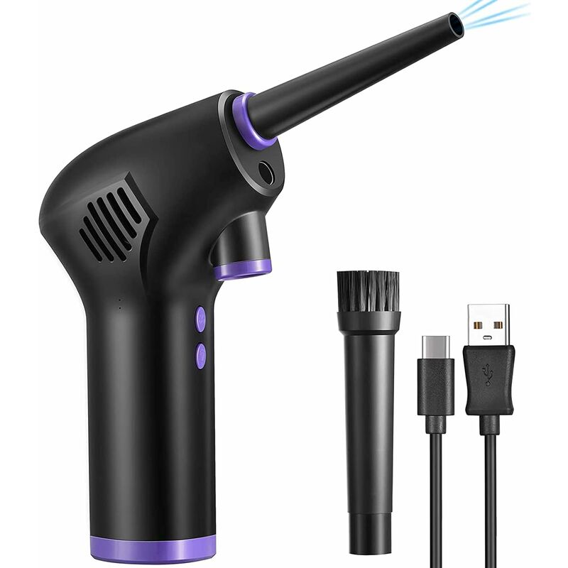 Aspirapolvere portatile per pulizia efficiente - : l'aspirapolvere USB è di piccole dimensioni, ti consente di portarlo ovunque tu voglia pulire. Aspirazione più forte, con 2 ugelli diversi, un'efficace combinazione di pulizia può raggiungere alcuni punti difficili da raggiungere che puliranno in modo più efficiente [Potente spolverino ad aria senza fili]: il soffiatore di polvere d'aria produce una potente spinta d'aria, il motore consente di raggiungere la velocità massima fino a 45.000 giri/min. Ottimo per la pulizia di oggetti per la casa e l'ufficio, tra cui divani, tende, organizzatori di giocattoli, ventilatori, condizionatori d'aria, cassetti e anche gli interni della tua auto [USB ricaricabile e ricarica rapida]: grandi batterie al litio integrate da 6000 mAh, e ha 2 impostazioni di velocità, la bassa velocità può funzionare per circa 30 minuti, l'alta velocità può funzionare per 35 minuti. Il pacchetto include un cavo di ricarica rapida di tipo c, completamente carico in 4