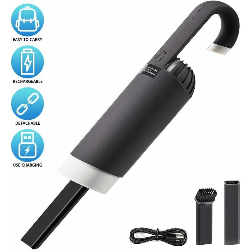 Scenari applicativi multipli Il mini aspirapolvere ha una potenza sufficiente per aspirare piccoli oggetti come cenere dell'accendisigari, polvere, capelli, briciole di cibo, residui di gomma, piccole viti. Per pulire tastiere e aree ristrette e adatto a famiglie, maneggiare peli di animali domestici, automobili, ecc. Mini aspirapolvere portatile potente 2 in 1 L'aspirapolvere senza fili ad alte prestazioni è dotato di 2 diversi ugelli per soddisfare tutte le esigenze di pulizia. con 3000 giri/min e un motore da 35 W con potenza di aspirazione di 2000 Pa. Basta rimuovere i più comuni tipi di sporco, sabbia, ritagli di carta, peli di animali, ecc. Rimovibile e lavabile L'aspirapolvere portatile cordless supporta il filtro HEPA in plastica, lavabile e più durevole. il contenitore raccoglipolvere asportabile è l'ideale per uno smaltimento facile e veloce dei rifiuti, comodo per il prossimo lavoro di pulizia. Funziona in modo efficiente Batteria a lunga durata - L'aspirapolvere senza fili