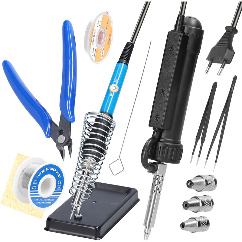 Questo è un tipo di strumento di rimozione dello stagno di saldatura di qualità, grandi volumi con una forte aspirazione, perfetto per il lavoro di rimozione dello stagno. Adatto per rimuovere lo stagno da circuiti integrati a film spesso e componenti di grandi dimensioni. Il funzionamento facile, rapido e conveniente, aiuta a migliorare l'efficienza lavorativa. Ampie applicazioni, questo set può essere ampiamente utilizzato nell'industria elettronica, lavori di riparazione, elaborazione di circuiti elettrici, modellismo e così via. Puoi provare. Caratteristiche: Grandi volumi con forte aspirazione, saldature e dissaldature rapide, perfette per rimuovere stagno da circuiti integrati a film spesso e grandi componenti. Impugnatura ad alta resistenza e resistente alle alte temperature, design ergonomico, sensazione della mano confortevole, più sicuro da usare. Ugello in lega metallica, evita l'ossidazione, la resistenza all'usura e può fornire lunghi tempi di servizio. Design a