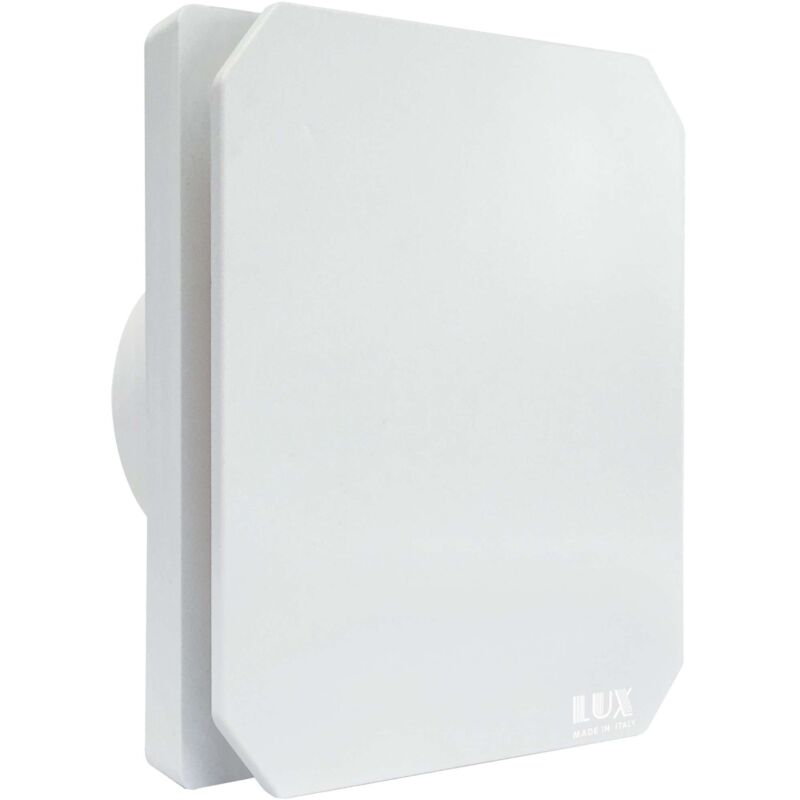 Mod. lux 308 in materiale termoplastico antipolvere. applicazione a parete. base ad apertura fissa. diametro 12 cm. portata 140 mc/h. consumo 15 w
