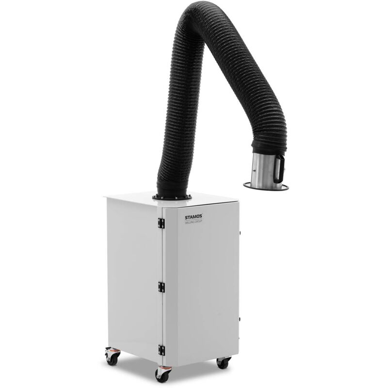 Aria pulita durante la saldatura grazie all'efficace aspiratore dei fumi di saldatura I lavori di saldatura e taglio al plasma producono fumo che peggiora notevolmente la qualità dell'aria. Nutzen Sie deshalb die Schweißrauchabsaugung von Stamos Germany, die Ihren Arbeitsplatz frei von starker Rauchentwicklung hält. Mit dem Gerät aus Karbonstahl filtern Sie effektiv trockene, ölfreie und nicht korrosive Rauchgemische und halten die Luft in Ihrer Werkstatt sauber.Für einen variablen Einsatz der Schweißabsaugung steht Ihnen ein Arm zur Verfügung, den Sie zum Ausrichten um 360° drehen. e questo permette di adattare costantemente il dispositivo alla linea di saldatura. Der leistungsstarke 750-W-Motor erreicht einen Luftdurchfluss von 1000 m3/h, sodass Sie eine Gesamtfläche von 15 m2 von Rauch befreien. Le quattro ruote in gomma offrono ulteriore flessibilità, perchè permettono di trasportare in modo facile il sistema di aspirazione dei fumi e posizionarlo dove serve. Für einen sicheren
