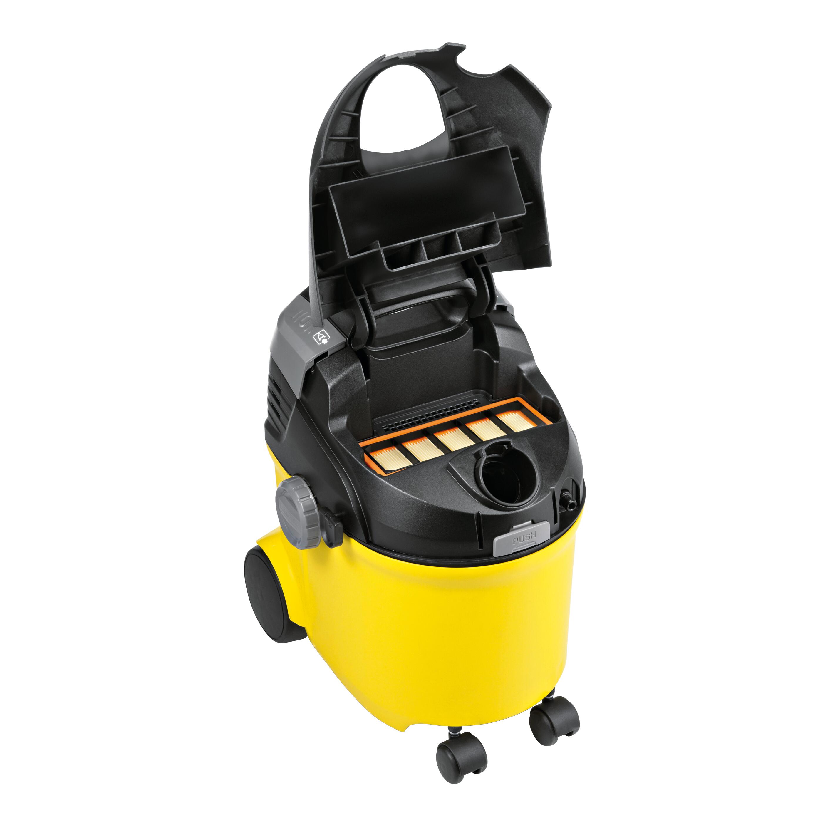 Aspiratore industriale, serbatoio in polipropilene da 4L, potenza di aspirazione 21 kPa, 1400 W. Ideale per la pulizia di: tappeti, mobili imbottiti e tessuti, scale ricoperte da moquette, materassi, superfici tessili, interni auto. Sistema 2-in-1 comodo con tubo spruzzo estrazione integrato. Bocchetta con tecnologia Kärcher con notevole risparmio tempo.