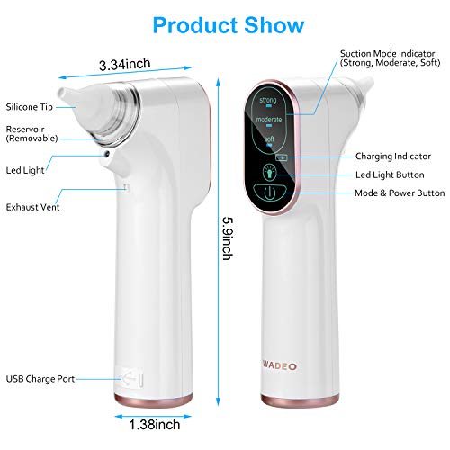 Aspiratore nasale per bambini, ricarica USB, 3 livelli di aspirazione regolabili, 4 misure in silicone medico, luce LED, per neonati, neonati e bambini, sicuro e igienico