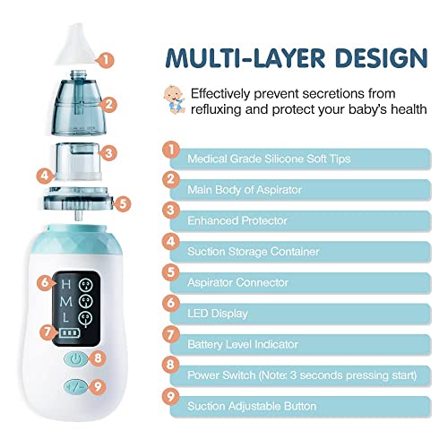 Aspiratore nasale, Bichiro detergente elettrico per naso nasale e cerume per orecchie con 4 ugelli riutilizzabili per succhiasangue per neonati, bambini piccoli e neonati, Bianca