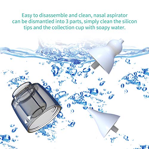 Aspiratore Nasale Neonato Elettrico USB Ricaricabile - Lavaggio Nasale con 4 Punte (2 Diverse Dimensioni) e Regolabile a 3 Livelli di Forza Aspirazione per Neonati e Bambini - Musica Meravigliosa