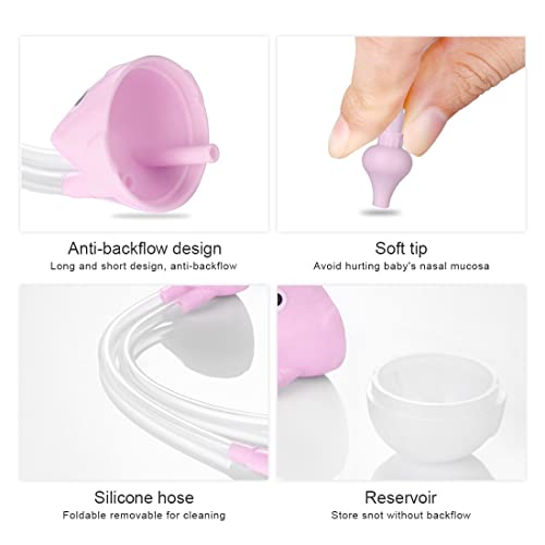 Aspiratore nasale 1 pezzo con cannula antireflusso, per bambini da 0 a 3 mesi, rosa