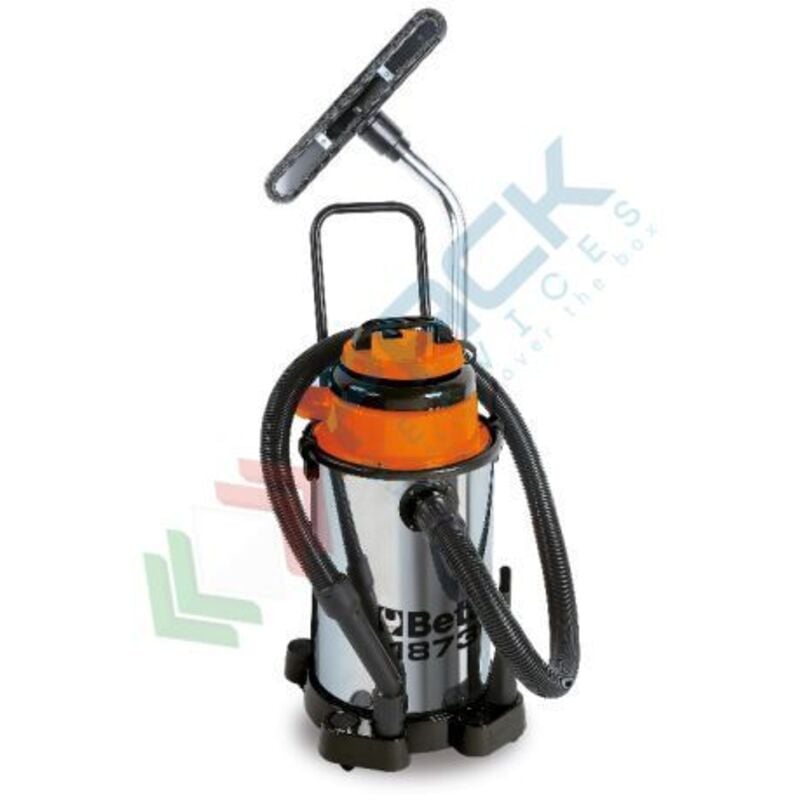 Aspiratore, aspiraliquidi da 30 litri per solidi e liquidi in acciaio INOX Funzione soffiante Ruote antitraccia CARATTERISTICHE TECNICHE Motore by-pass bistadio tensione 230/240 V frequenza 50/60 Hz Potenza Max 1100 W Portata d'aria l/sec. 55 Depressione Max 220 mbar Capienza Max bidone 30 l in acciao Inox Emissioni acustiche