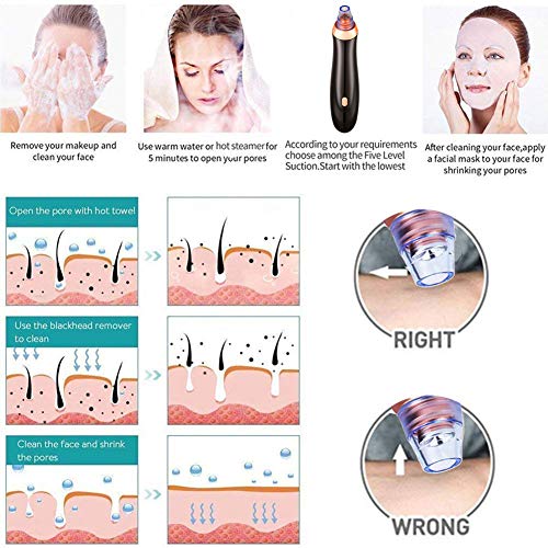 Aspiratore punti neri, OKEEY Pore cleanser Rimozione di comedone 5 in 1 Multifunzionali rimozione punti neri/brufoli/acne, Remover blackhead kit pulizia viso punti neri con Due gadget remover