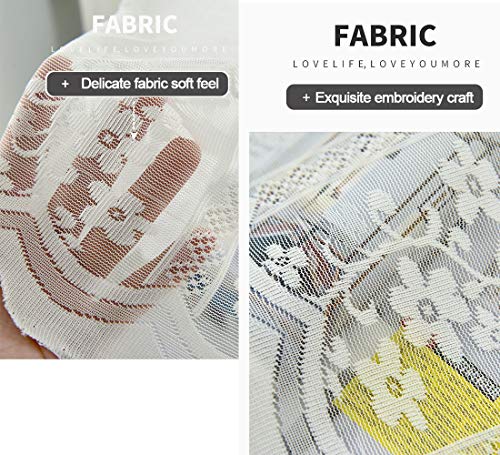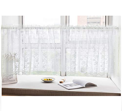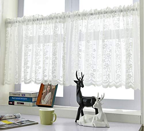 Aspthoyu Tenda Corta Mantovane, Voile Bianco Decorazione in Pizzo, Trasparenti Stile Rustico Tende Corte per Cucina Parete Balcone Bistrot Camera Ristorante 150 x 60cm Vegetazione