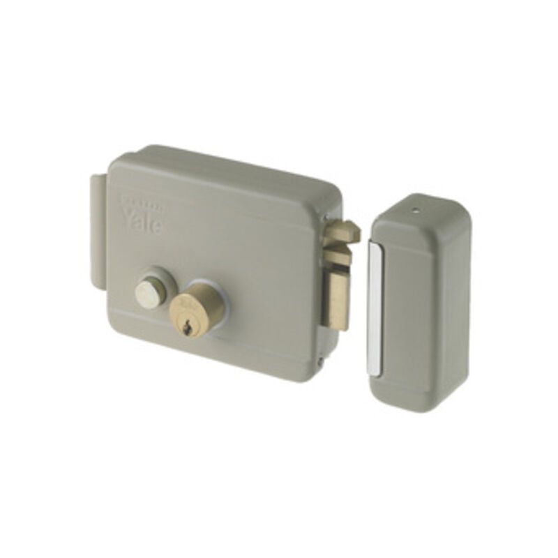 Art. 688 scrocco autobloccante con pulsante interno. Cilindro interno ed esterno fisso. Il cilindro interno blocca e sblocca il pulsante. Completa di contropiastra e tettoia. Mano DX Scatola mm 130x105 Entrata 70 mm