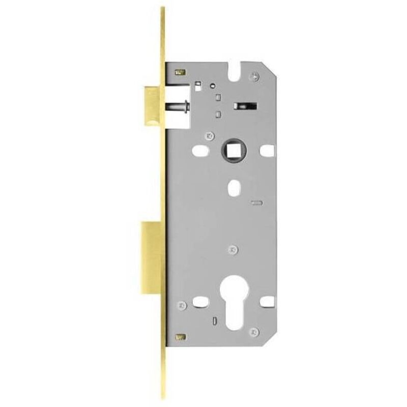 Art. Y 52 X da infilare catenaccio a 2 mandate. Scrocco reversibile. Frontale e contropiastra in acciaio ottonato. Entrata 40 mm Certificata EN 12209:2003 200.000 cicli e resistenza al fuoco.: PZ: 1,0