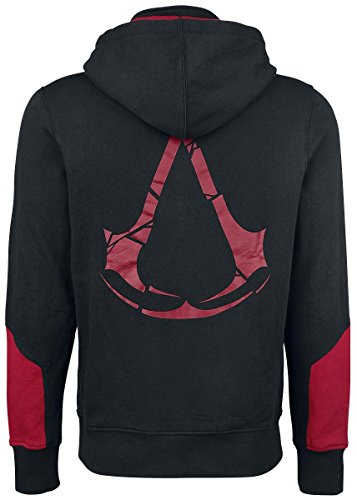 Assassins Creed Rogue - Felpa con Cappuccio con Maniche, Logo e Cerniera in Rosso - con Licenza Ufficiale - Nero - XXL