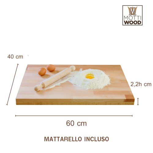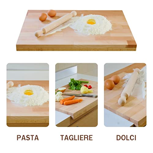 Asse Pasta, Mattarello Incluso, 100% Legno Faggio, 60X40X1,9cm, Con Gradino (2,2cm)