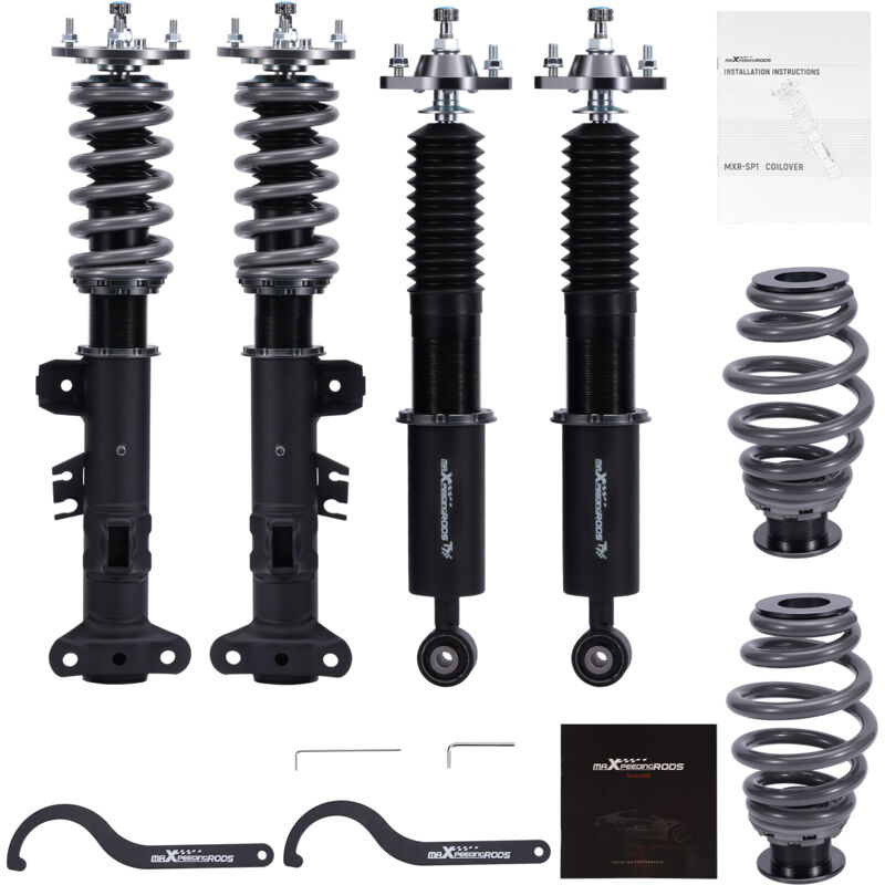 Application For BMW 3 E36 Berlina 316i 318i 320i 323i 325i 328i 318is 325is 318tds 325tds 325td 09/1990-12/1998 For BMW 3 E36 Coupe 318is 316i 320i 323i 325i 328i 328is 09/1991-04/1999 For BMW 3 E36 Cabriolet 318i 320i 323i 325i 328i 03/1993-04/1999 For BMW 3 E36 Touring 316i 318i 320i 323i 328i 318tds 325tds 08/1994-12/1999 Specification Altezza regolabile: abbassamento di 1-3 pollici Smorzamento: 24 livelli di smorzamento in estensione regolabili Supporti superiori anteriori: supporto superiore con sfera a cuscino con piastra camber Supporti superiori posteriori: supporti superiori a sfera Rigidità della molla Anteriore: 9kg/mm (504 lbs/in) Rigidità della molla Posteriore: 11kg/mm (616 lbs/in) Lunghezza della molla anteriore: 180 mm Lunghezza molla posteriore: 183 mm Diametro interno molla anteriore: 70,5 mm Diametro interno molla Posteriore: 63mm Tipo di ammortizzatore: doppio tubo Precarico molla: 7-10 mm Feature 1) L'olio di smorzamento delle corse e le velocità delle molle sono