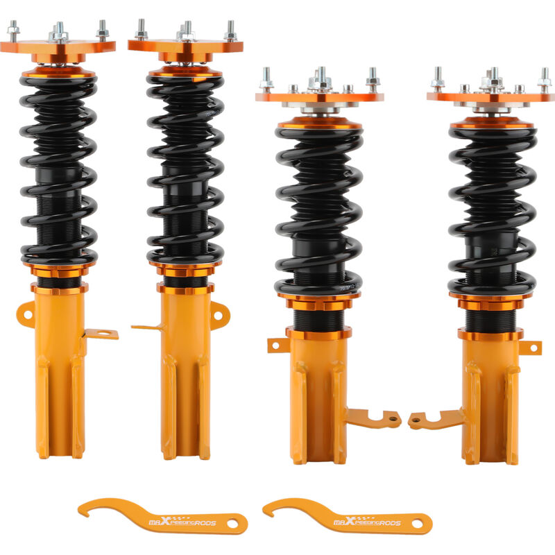 Application for Toyota Corolla E90 1987-1992 for Toyota Corolla E100 1991-1998 for Toyota Corolla E110 1995-2002 for Toyota Corolla AE92 1987-1991 for Toyota Corolla AE101 1992-1998 for Toyota Corolla AE111 1988-2002 Indicazioni: Quantità: 2 anteriori + 2 posteriori Regolabile in altezza: sì, abbassabile di 1-3 pollici a seconda dei modelli di veicolo Smorzamento: Non regolabile Montaggio superiore anteriore: sfera con cuscino con piastra camber Attacco superiore posteriore: sfera a cuscino Camber regolabile: solo anteriore Tasso di elasticità anteriore: 8 kg/mm (448 lbs/in) Tasso di molla posteriore: 6 kg/mm (336 lbs/in) Tipo di ammortizzatore: Doppio tubo Precarico molla consigliato: 7-10 mm Caratteristica: 1. Regolazione dell'altezza abbassata da 1 "- 3" che consente un baricentro più basso e aggiunge anche una posizione più aggressiva. 2. I supporti superiori della piastra Camber aiutano a eliminare la necessità di un kit camber separato. 3. La struttura Twin-Tube consente una