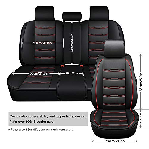 3. [IMPERMEABILE E DUREVOLE E ANTISCIVOLO] - Superficie in ecopelle di alta qualità con fodera in spugna composita super morbida da 5 mm, confortevole, lavabile. Ultimo design realizzato in materiale di pelle pieno traspirante e resistente all'usura e presenta un eccellente effetto stereoscopico. Scalabile per la parte centrale del cuscino della fila posteriore e il design con cerniera sulla spalla dei coprisedili anteriori, bordo circondato, consente di fissare meglio i coprisedili sui sedili.
