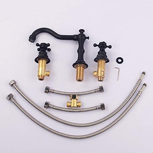 Assiavree Rubinetto Tipo Split Rubinetto del Bacino Caldo E Freddo del Rubinetto di Mescolanza Nero A Tre Fori del Rubinetto Antico Miscelatore Bagno (Color: Black)