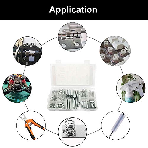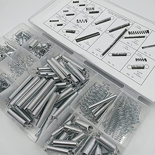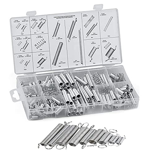 Diverse dimensioni: Include molle di estensione e molle di compressione in 20 diverse dimensioni, 200 pezzi in totale. 76 molle di compressione, da 5,5 mm a 9,5 mm;