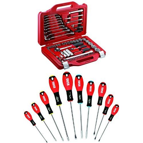 ASSORTIMENTO IN CASSETTA MODULARE CON BUSSOLE ESAGONALI E CHIAVI COMBINATE USAG 601 1/4-1/2 J82 + USAG U03220255 322 SH10 Serie di 10 Giraviti per Viti con Intaglio, Impronta a Croce Phillips e Impronta a Croce PoziDriv